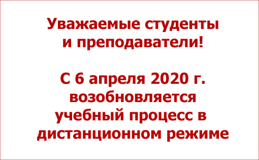 С 6 апреля 2020 г. возобновляется учебный процесс в соответствии с расписанием. Все занятия ведутся в дистанционном режиме.